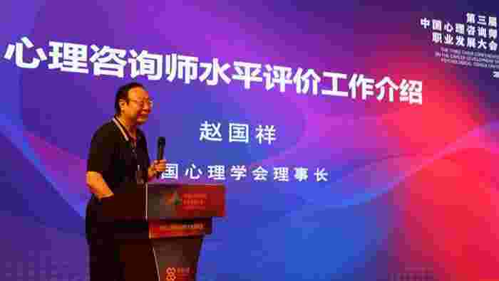 9月14日,在第三届中国心理咨询师职业发展大会上,大会联合主席、中国心理学会理事长赵国祥介绍“心理咨询师水平评价工作”。
